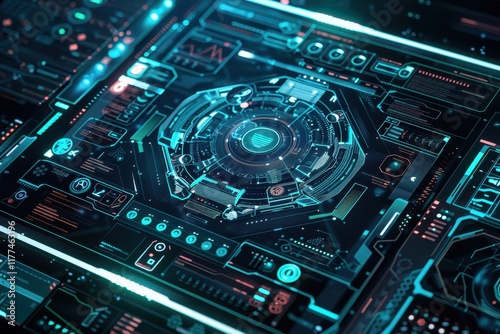 Futuristic Digital Interface with Glowing Blue and Red Elements