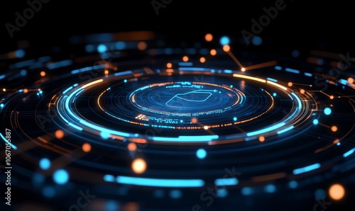 Futuristic digital interface with glowing circles and data points