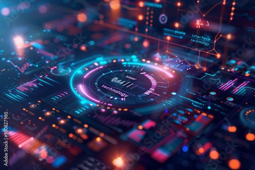 Futuristic digital interface with vibrant colors and intricate patterns representing technology and user interaction