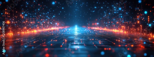 Futuristic Digital Landscape Cyberpunk Neon Light Data Transfer Illustration