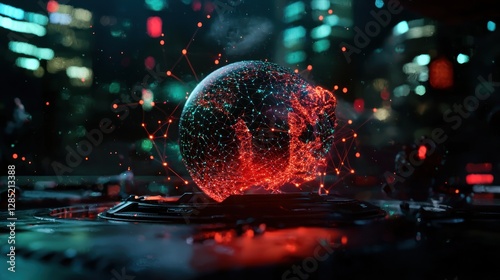 Futuristic digital landscape showcasing a glowing skull surrounded by vibrant data connections