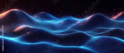 Futuristic Digital Landscape with Glowing Blue Particles and Waves in Sci-Fi Style