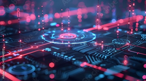 Futuristic Digital Neon Glowing Artificial Intelligence Matrix Visualization