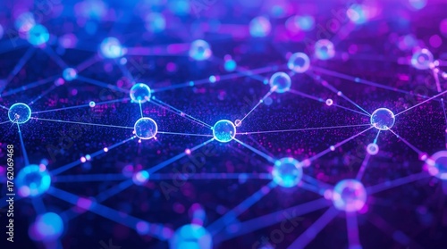 Futuristic digital network background with glowing blue connections and glass nodes, abstract data visualization, neural structure and modern technology concept in vibrant cyber light