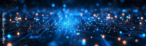 Futuristic Digital Network Circuit Board in Blue and Black