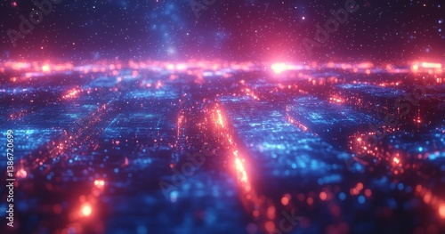 Futuristic Digital Network Interconnected Lines Nodes Glowing Blue Abstract Technology Communication Innovation