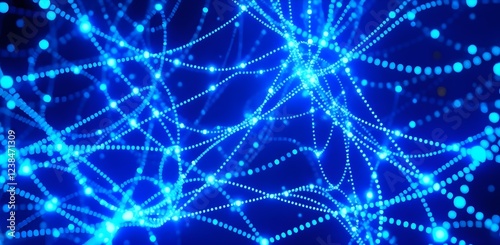 futuristic digital network of interconnected blue neon dots, symbolizing data flow, and cyber technology, ideal for backgrounds, tech visuals and innovation concepts