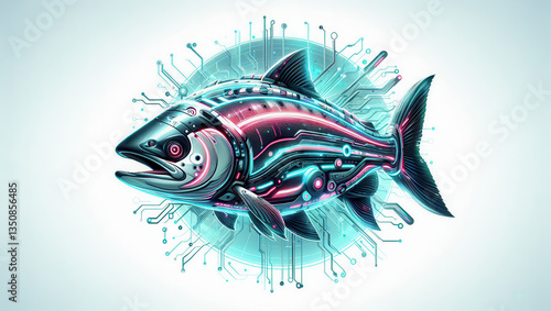 Futuristic digital salmon illustration tech-inspired design modern art creative concept