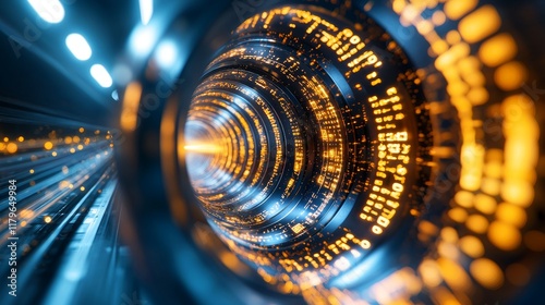 Futuristic Digital Tunnel Abstract Data Flow Glowing Orange and Blue Technology Background