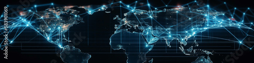 Futuristic digital world map with globar business, banner, generative ai