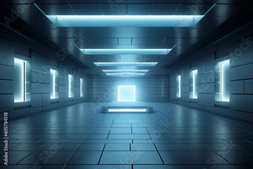 Futuristic empty room. Abstract futuristic interior, creative ai