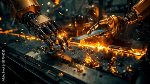 Futuristic Factory Robotic Arms Tablet Control Industry 4 0