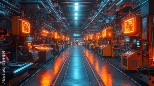 Futuristic Factory: Neon Lights and Advanced Machinery