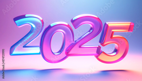 Futuristic Fantasy: Colorful Glass Numbers '2025' Floating in a Dreamlike Scene