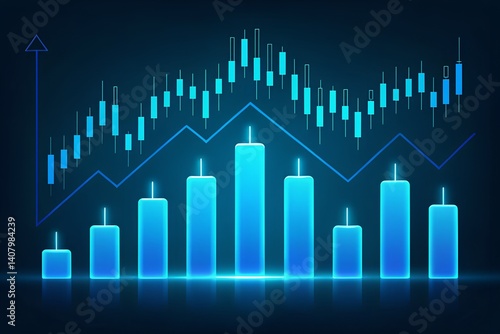 Futuristic Financial Chart with Glowing Blue Candlesticks – Investment Growth and Bullish Market Concept