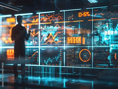 Futuristic Financial Planning Session with Holographic Charts and Virtual Advisor