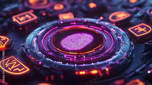 futuristic fingerprint biometric security scan - cyberpunk aesthetics