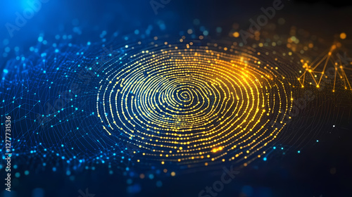 Futuristic Fingerprint Design in Yellow and Gold on Blue Background