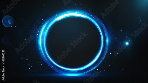Futuristic Glowing Blue Energy Ring with Sci-Fi Digital Effects