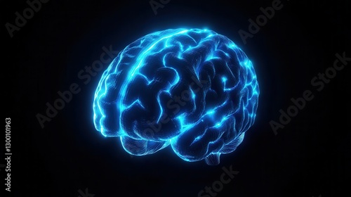Futuristic Glowing Brain Illustration Showcasing Digital Technology and Neuroscience Concepts