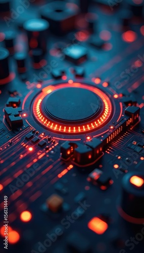 Futuristic Glowing Circuit Device Groundbreaking Technological Innovation