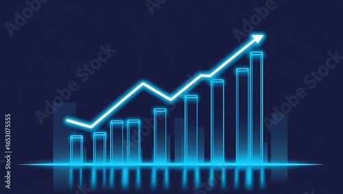 Futuristic glowing data visualization graph with neon light bars and line chart on dark background