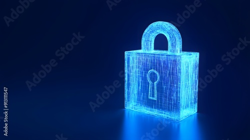 Futuristic glowing lock hologram on dark background, symbolizing cybersecurity, data protection, and digital security concepts.