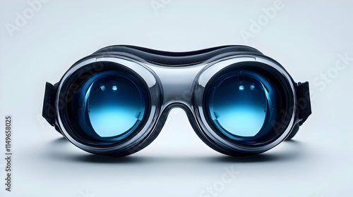 Futuristic goggles with blue lenses designed for immersive experiences.