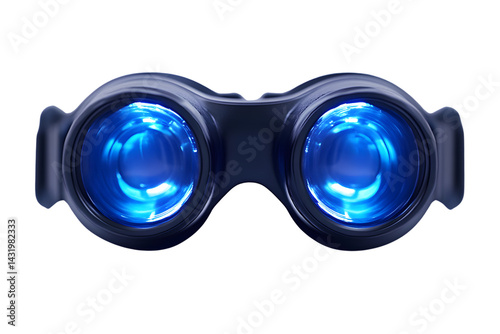 Futuristic Goggles with Glowing Blue Lenses for Virtual Reality and Augmented Vision Technology