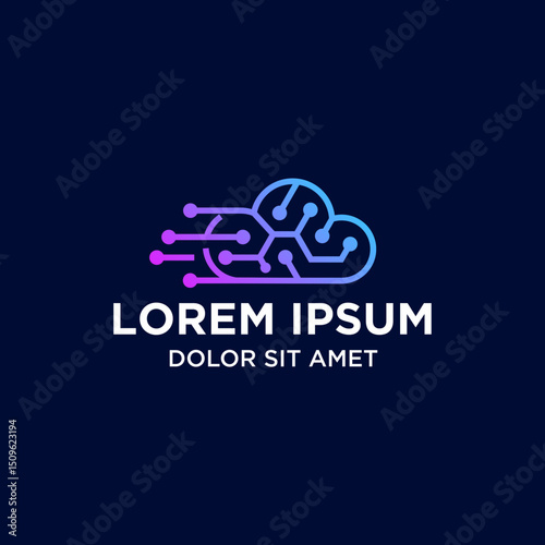 Futuristic Gradient Cloud Brain Circuit Connection Abstract Technology Logo Design