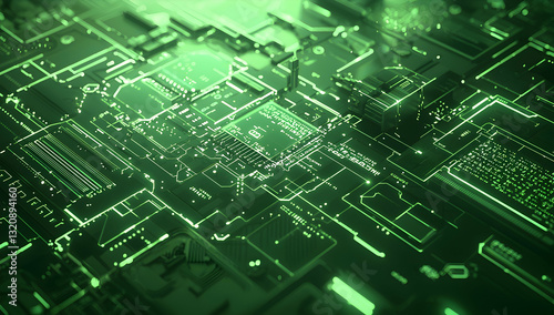 Futuristic green backdrop in an abstract tech setting, perfect for showcasing innovation and technological progress.