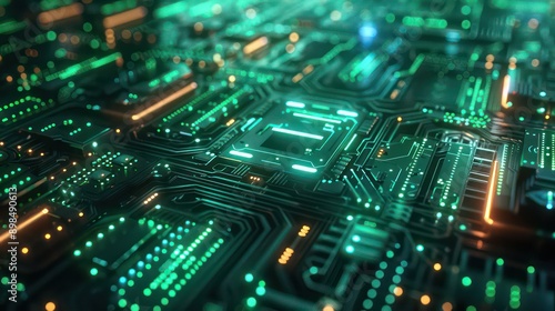 Futuristic Green Circuit Board Close-Up, Digital Technology Background