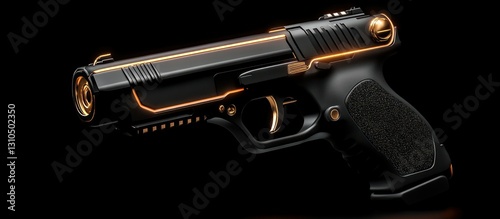 Futuristic handgun with glowing accents on a black background, ideal for sci-fi concepts