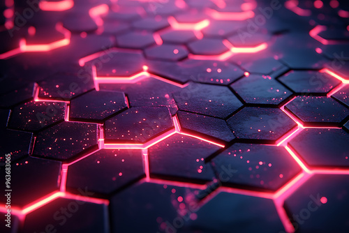 Futuristic hexagonal grid pattern with a vibrant neon glow, ideal for sci-fi themes, technology visuals, and modern digital designs.