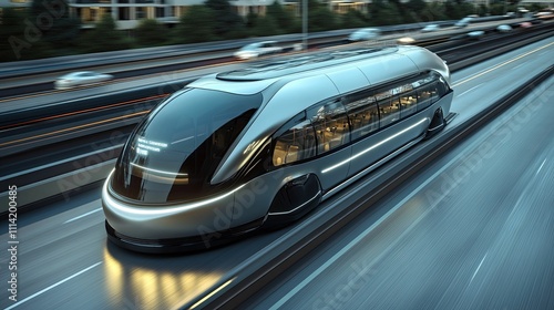 Futuristic High Speed Vehicle Travels Along Elevated Highway