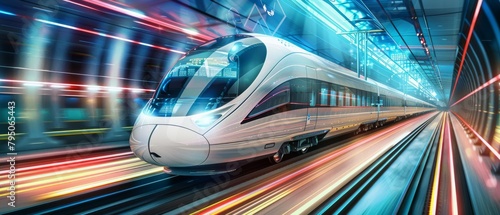 Futuristic high-speed train in a neon-lit tunnel