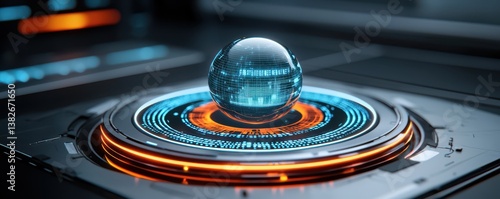 Futuristic high-tech sphere display in sci-fi laboratory 3d visualization concept