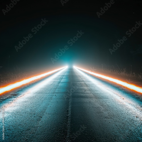 Futuristic Highway Night Road Bright Lights Abstract Background