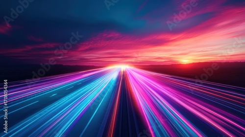 Futuristic Highway at Sunset with Light Streaks and Vibrant Colors Speed Concept