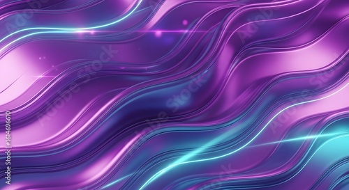 Futuristic holographic background, neon purple and cyan, glossy metallic texture, fluid waves and light flares, high-resolution abstract design