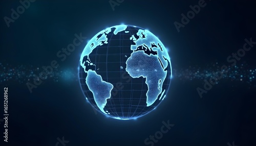 Futuristic holographic globe with glowing data points and grid lines, soft light effects, no chrome.