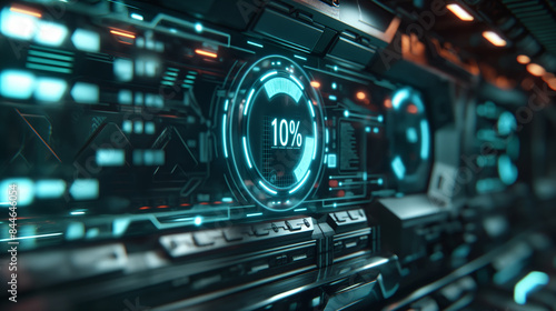 Futuristic Holographic Progress Bar at 10% Completion: High-Tech Update or Loading Visualization in Cyber Environment with Glowing Blue Interface