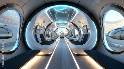 Futuristic Hyperloop Interior: Quantum Entanglement Design, 3D Rendering