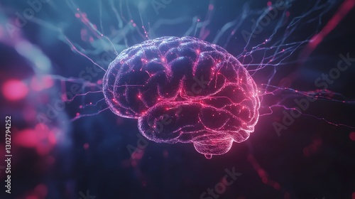 Futuristic Illustration of a Glowing Brain with Neural Connections