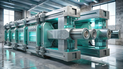 Futuristic Industrial Machine: Advanced Technology in Manufacturing, Engineering and Science, Modern Equipment for Production and Innovation, Abstract Design