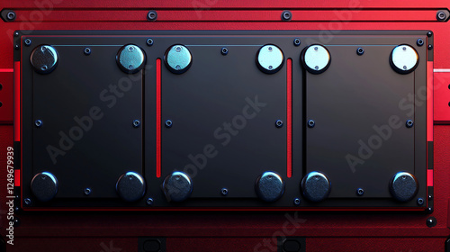 Futuristic Industrial Panel – Black Metal Plate on Red Tech Background