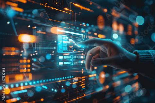 Futuristic Interface Interaction: Human Hand Engaging with Digital Technology