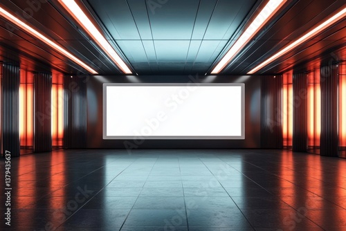 Futuristic Interior Design Minimalism with Blank Digital Screen for Urban Advertising Display