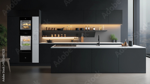 Futuristic Kitchen with Smart Appliances, Touch-Sensitive Countertops, and Ultra-Modern Design