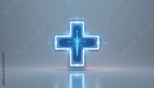Futuristic medical cross symbol with 3D layers and light effects